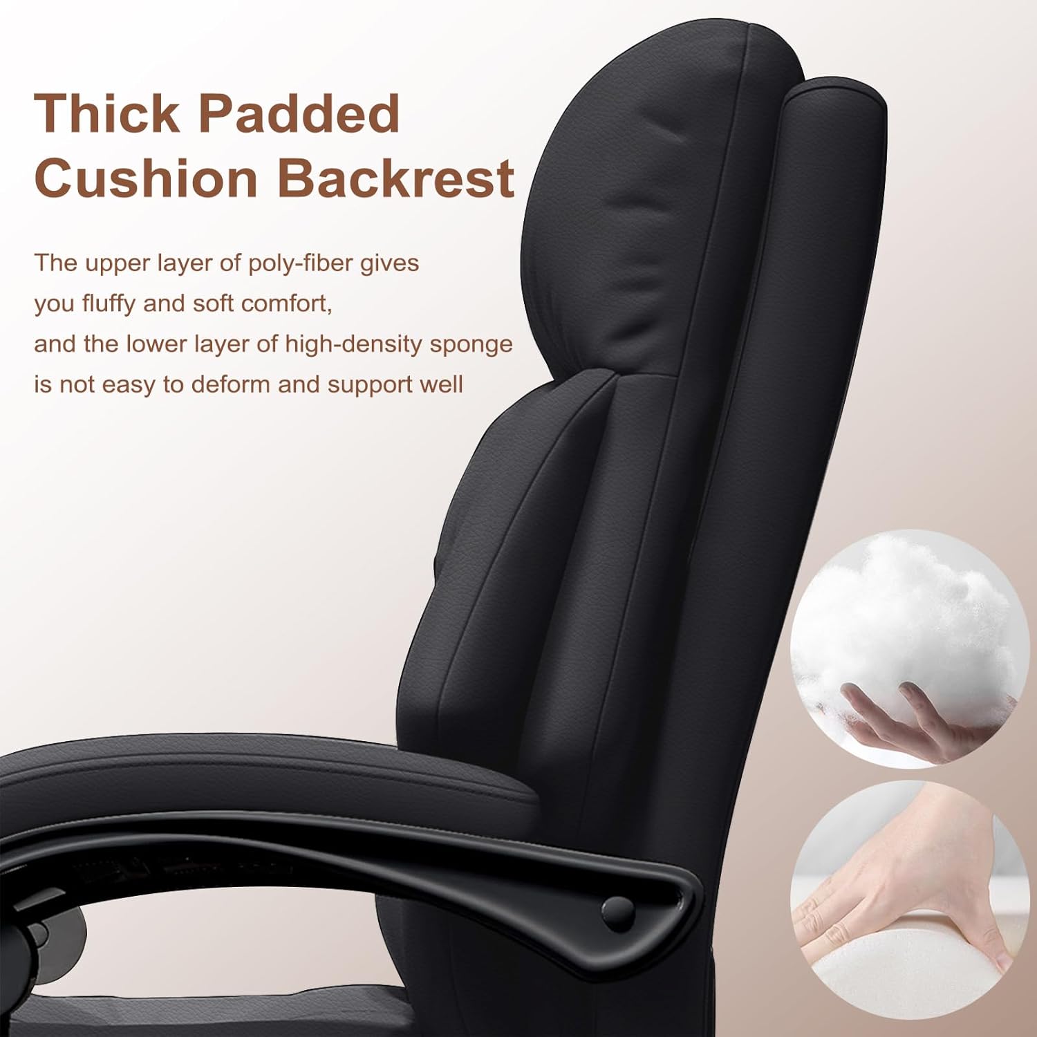 - SUPER COMFY: Stuffed with a high-density sponge, the cushion of the seat and back offers a softer and more comfortable sitting experience. Featuring scratch resistance leather, this reclining office chair is both beautiful and durable. It is very easy to clean by gently wipe it with a damp cloth.