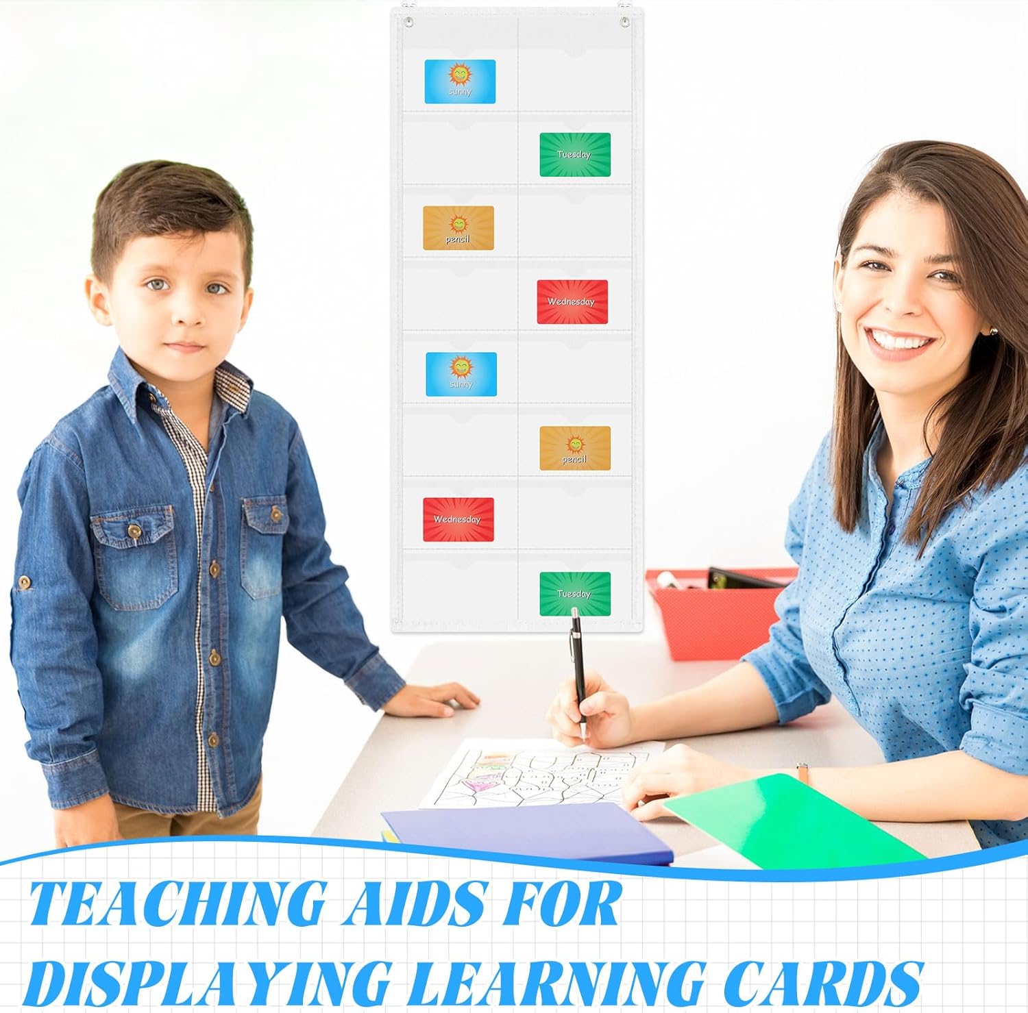 - Easy to Hang: the flash card organizer is very thin and lightweight, only 2 common pins are needed to hang, no need to use a lot of nails to install, drill holes or clutter your space, minimize damage to the wall